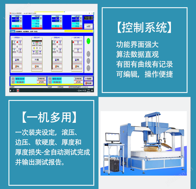 由于记忆棉的特性,对其进行滚压疲劳测试的设备,除需满足通用标准外,还应在测试条件控制和数据监测方面具备相应的能力。