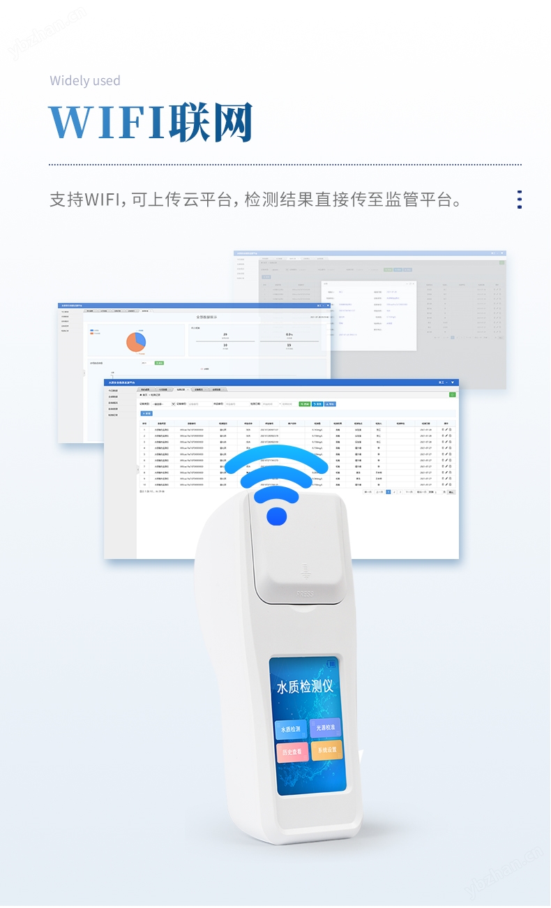 ②配置云监控平台,检测结果可直接无线传至平台,进行水质长短期分析,辅助管理。