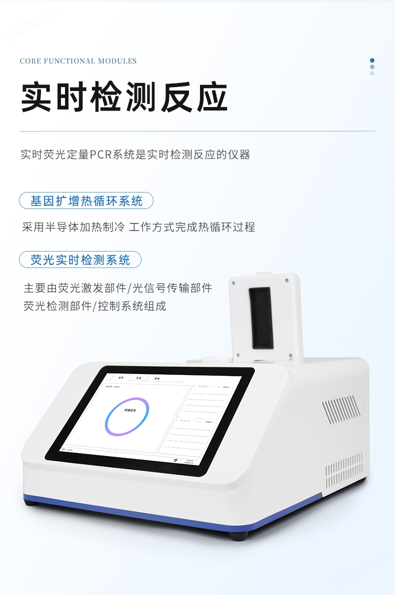 宠物病毒检测仪是实时检测反应的仪器,主要由基因扩增热循环系统、荧光实时检测系统、微电路控制系统、计算机及应用软件组成。其中两个核心功能??椋喝妊废低澈陀馐凳奔觳庀低?。其中基因扩增热循环系统工作原理与传统基因扩增仪工作原理基本相同,采用半导体加热制冷工作方式完成热循环过程。荧光检测系统主要有由荧光激发部件、光信号传输部件、荧光检测部件、控制系统组成。