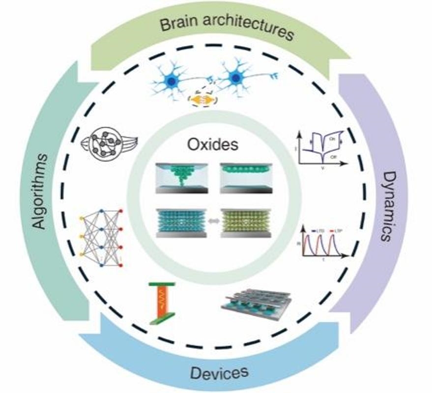 仪表网 研发快讯】人脑由千亿级神经元和突触构成,是自然界最高效的计算平台,具备卓越的学习、记忆与并行处理能力,同时功耗极低。受此启发,类脑计算(Neuromorphic Computing)成为突破传统冯·诺依曼架构瓶颈的关键方向。其中,阻变器件(Resistive Switching Devices)因其结构简单、可微缩性强、能耗低等优势,被视为实现人工突触功能的理想候选器件。而复杂氧化物材料由于其丰富的亚稳态和强关联电子特性,在外加电场下可展现出多样化的阻变行为,为模拟生物神经元的脉冲特性以及突触的可塑性、适应性等非线性动力学特性提供了独特平台。
