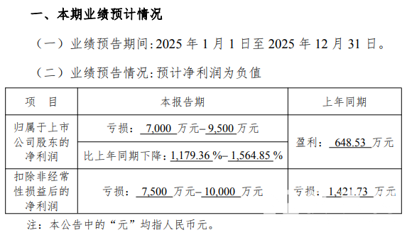仪表网 行业财报】1月26日,蓝盾光电(300862.SZ)发布业绩预告,预计2025年全年归属于上市公司股东的净利润为亏损7000万元-9500万元;预计2025年全年归属于上市公司股东的扣除非经常性损益的净利润为亏损7500万元-10000万元。