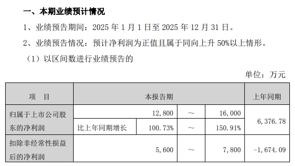 仪表网 行业财报】1月28日,三川智慧(300066)发布年度业绩预告,预计2025年全年归属于上市公司股东的净利润为12800万元-16000万元,同比预增100.73%-150.91%;预计2025年全年归属于上市公司股东的扣除非经常性损益的净利润为5600万元-7800万元,同比预增434.67%-565.89%。