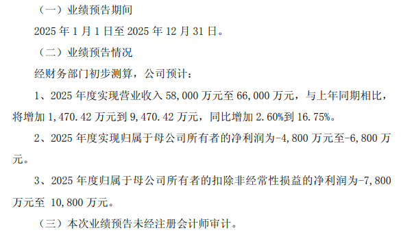 仪表网 行业财报】1月30日,灿瑞科技(688061.SH)公布,2025年度实现营业收入5.8亿元至6.6亿元,与上年同期相比,将增加1470.42万元到9470.42万元,同比增加2.60%到16.75%。2025年度实现归属于母公司所有者的净利润为-4800万元至-6800万元;归属于母公司所有者的扣除非经常性损益的净利润为-7800万元至-1.08亿元。