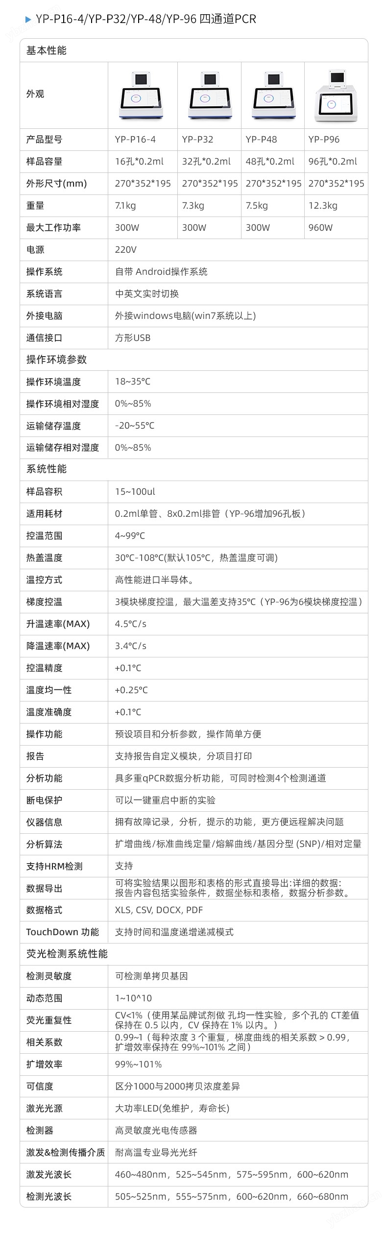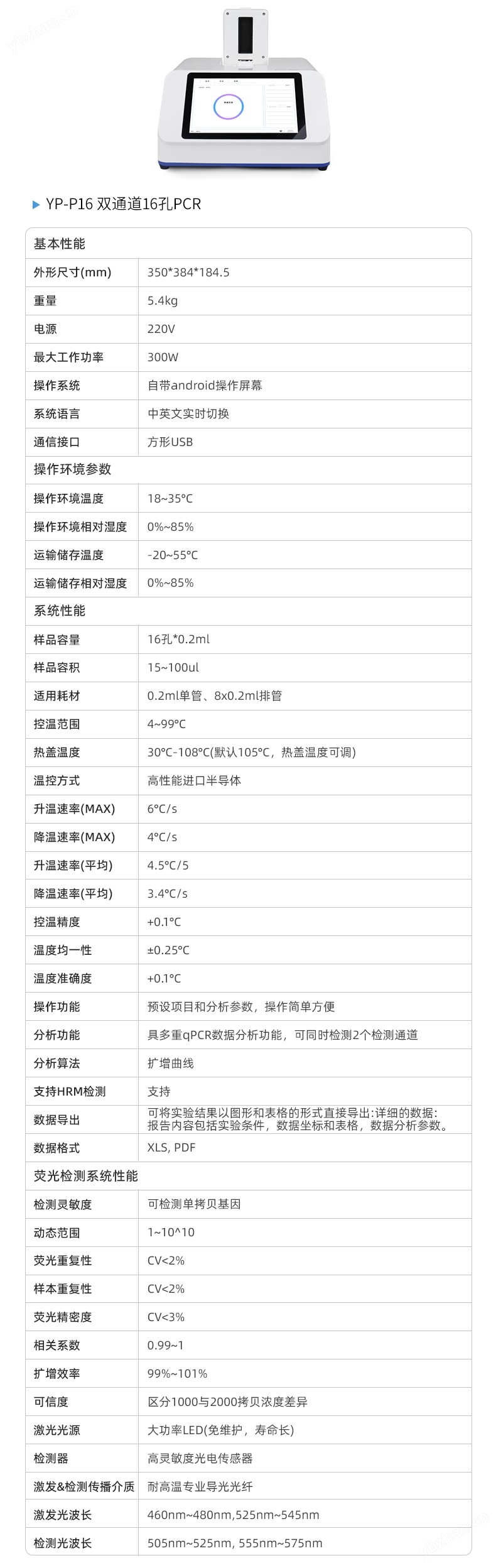 荧光免疫pcr检测仪主要用于运行实时荧光定量PCR实验,通过荧光激发和采集的方式,对实验过程进行实时监控,将实验过程数据绘制成荧光曲线,实时呈现于仪器显示界面,并对实验数据进行拟合和分析,最后可生成PDF格式的实验报告。