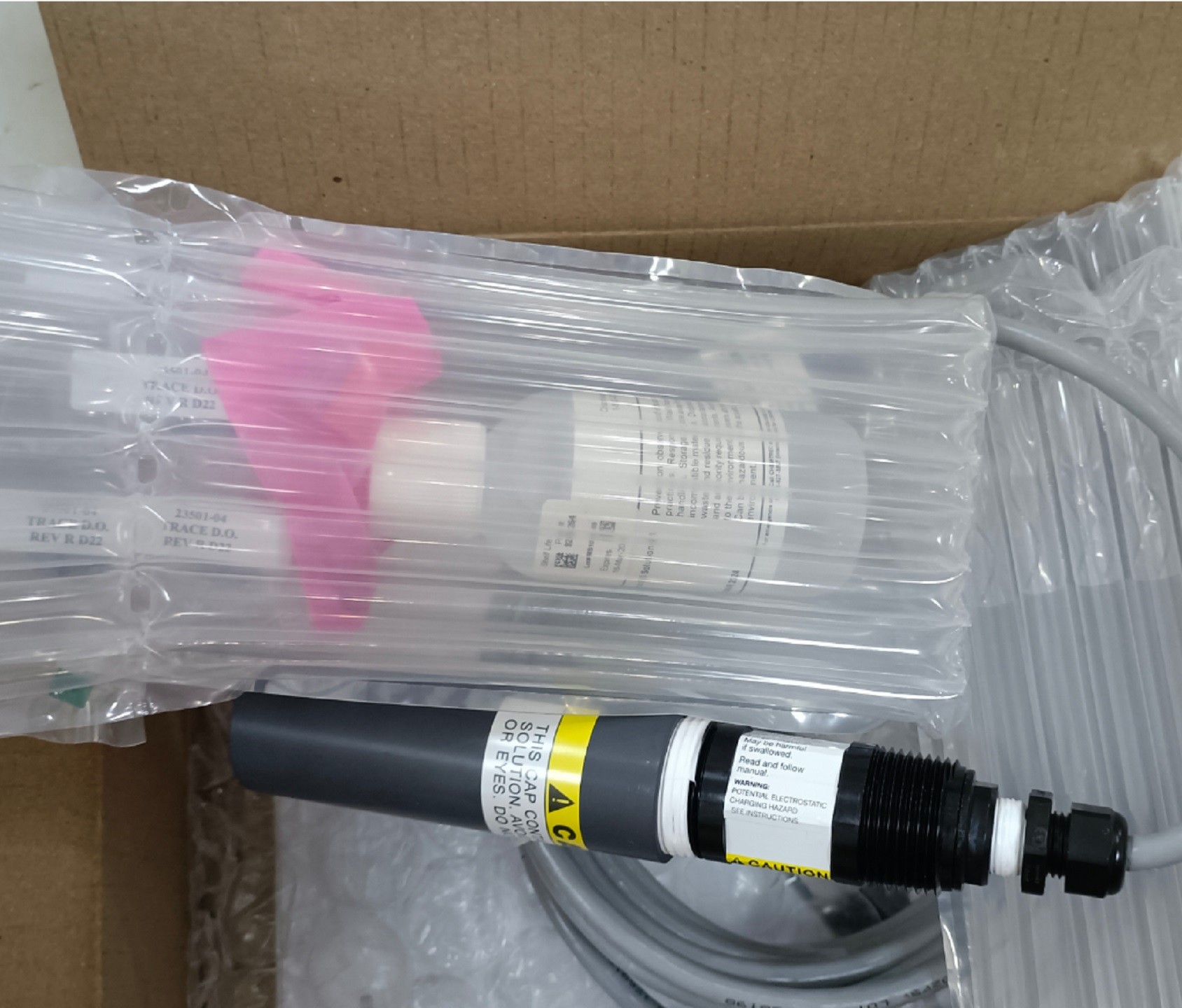 499ATrDO微量溶解氧传感器可以测量ppb级溶解氧。每个传感器供货时配3片薄膜组件、3个O型密封圈和1瓶4盎si(125毫升)的电解液。为了降低传感器的恢复时间,在运输时,应将传感器的隔膜浸泡在装有饱和的亚liusuan钠零氧溶液的?;っ蹦?。