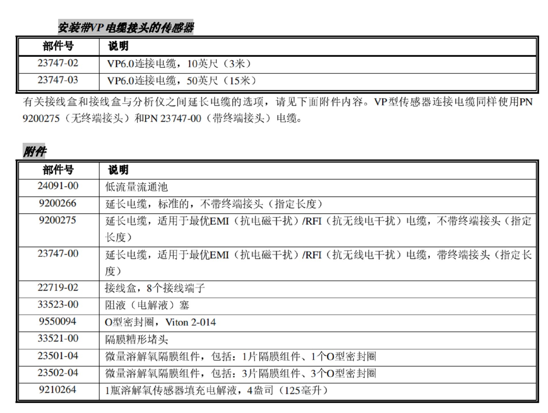 代码VP:带VP6.0电缆接头传感器(连接电缆单独订货)