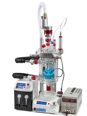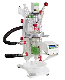 节省空间: 50ml, 100ml, 250ml, 500ml, 1L, 2L, 3L或 5L 反应釜供选择, 所有反应釜共用夹子、盖子、循环器和可调节高度的Globe平台
